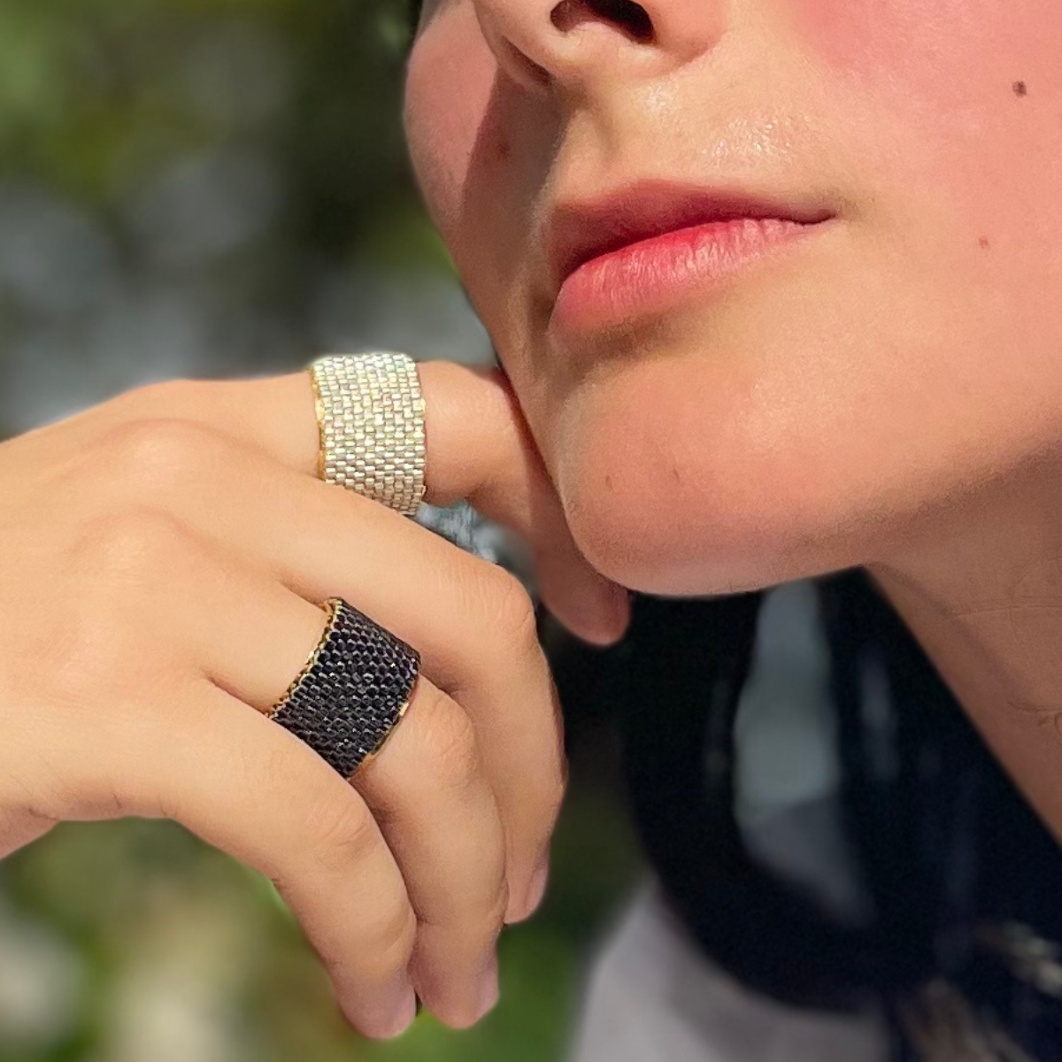 Cada pieza Martí es tejida cuidadosamente a mano, con vidrios de la marca Miyuki.