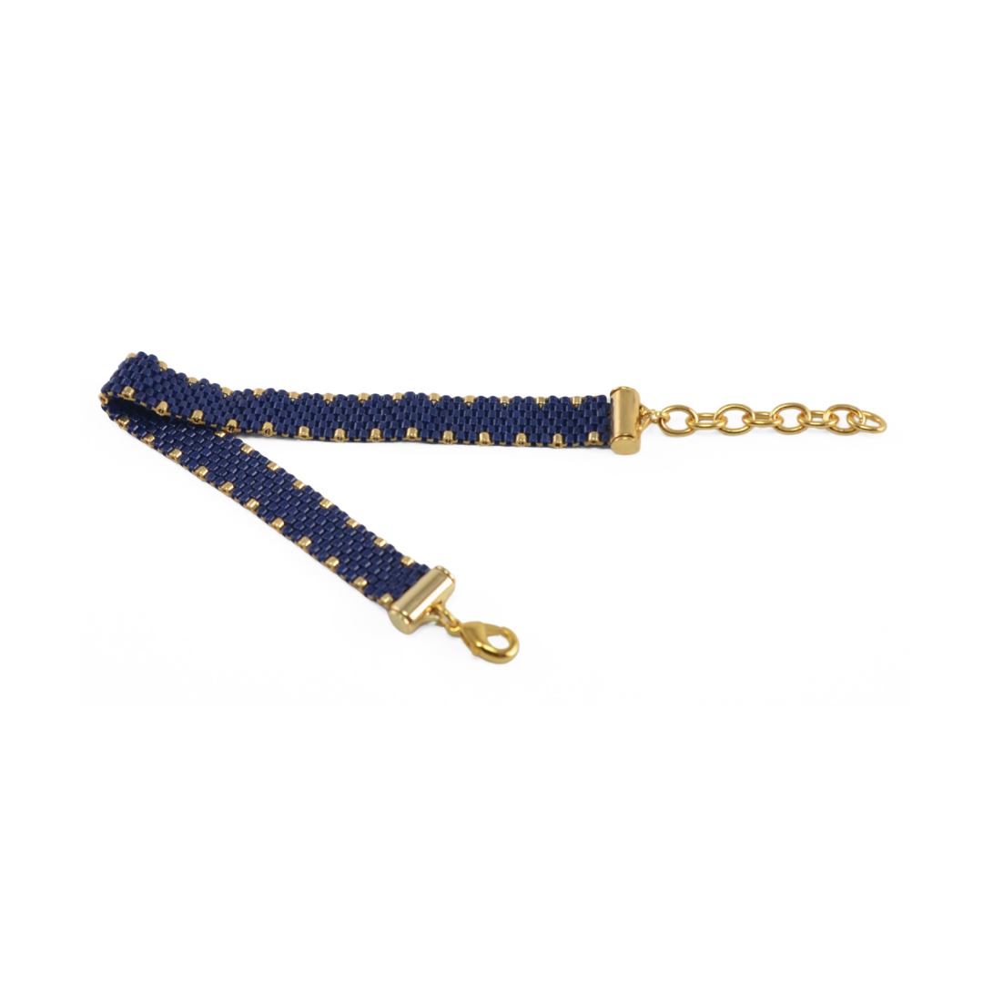 Medidas: Ancho: 0,7 cm.  Largo: 17,5 cm: 14 cm tejidos + 3,5 cm de cadena para ajustar a la medida de la muñeca.